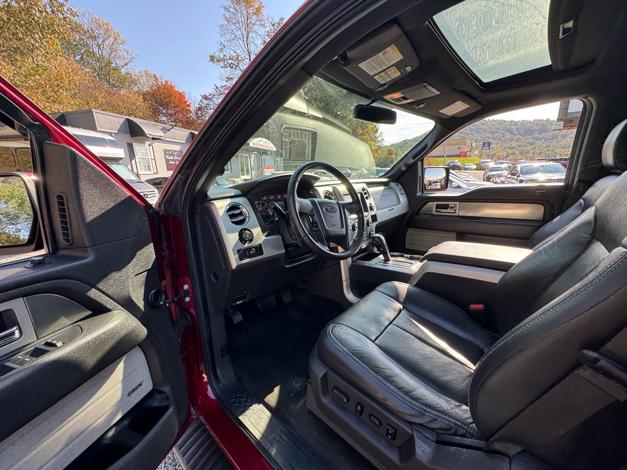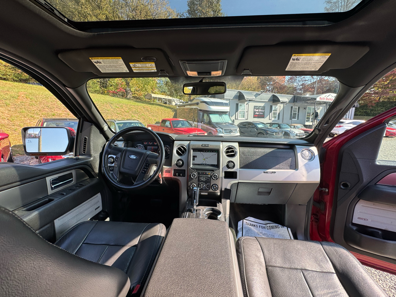 * 2014 FORD F-150 FX4, 4X4, 5.0L V8, 2 PREVIOUS OWNERS, AUTOMATIC, BLACK LEATHER INTERIOR, SUNROOF, HEATED SEATS, COOLED SEATS, NAVIGATION, BLUETOOTH, REMOTE START, SATELLITE RADIO, TOW PACKAGE, BED LINER, RUNNING BOARDS, FOG LIGHTS, ORIGINAL WINDOW STICKER, DUAL POWER SEATS, POWER WINDOWS, POWER LOCKS, POWER MIRRORS, CRUISE CONTROL, USB HOOK UP, STEERING WHEEL TILT, TELESCOPIC STEERING WHEEL, STEERING WHEEL CONTROLS, CD PLAYER, SONY SOUND SYSTEM, DUAL CLIMATE CONTROLS, TRACTION CONTROL, POWER ADJUST PEDALS, TRAILER BRAKES, POWER SLIDING REAR GLASS, INTERVAL WIPERS, KEYLESS ENTRY, OWNERS MANUAL.