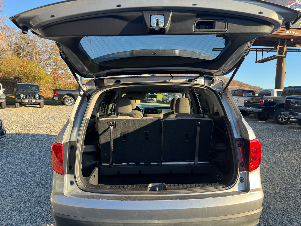 2018 HONDA PILOT EX, AUTOMATIC, 3.5L V6, AWD, TWO PREVIOUS OENERS (NC), GRAY CLOTH INTERIOR, BLUETOOTH, THIRD ROW, SEATS UP TO 8, BACK UP CAMERA, FOG LIGHTS, POWER DRIVER SEAT, POWER WINDOWS, POWER LOCKS, POWER MIRRORS, CRUISE CONTROL, AUX AND USB HOOK UP, STEERING WHEEL TILT, TELESCOPIC STEERING WHEEL, STEERING WHEEL CONTROLS, DUAL CLIMATE CONTROL, REAR HEAT AND AIR, 110 OUTLET, TRACTION CONTROL, INTERVAL WIPERS, KEYLESS ENTRY!